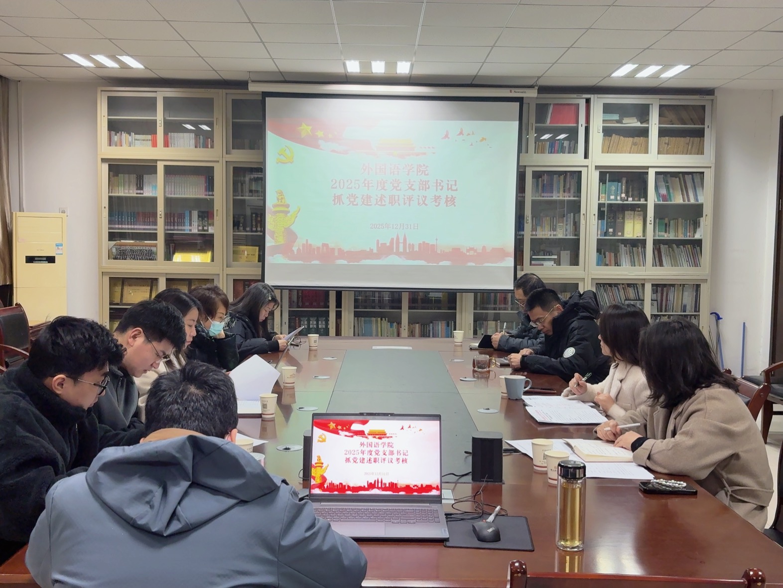 12月31日,外国语学院党委召开2025年度党支部书记抓党建述职评议考核会议。学院领导班子成员、党委委员及全体党支部书记参加会议,会议由学院党委副书记刘瑾主持。