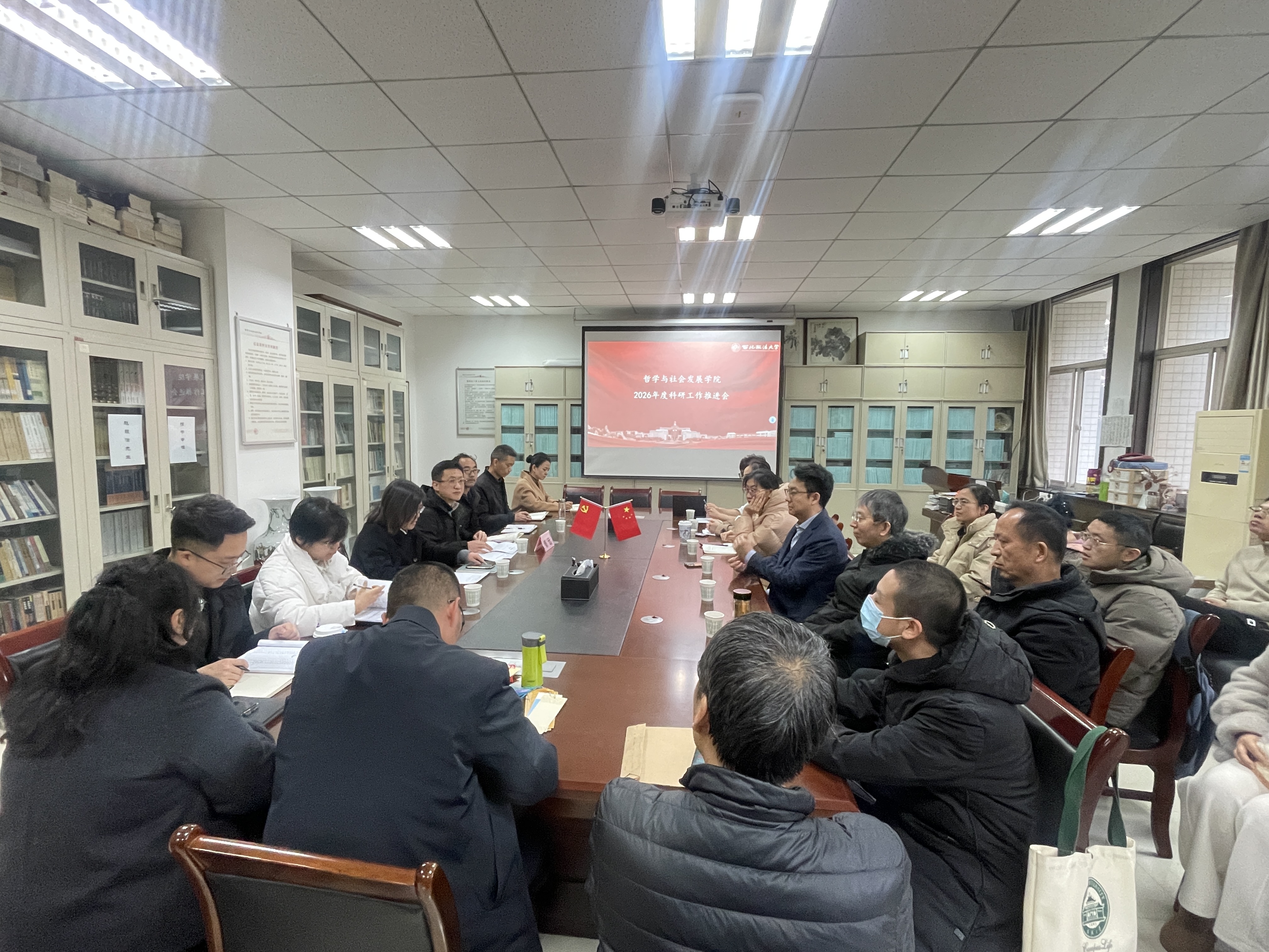 1月17日,哲学与社会发展学院召开2026年度科研工作推进会。学院班子成员及全体教职工参加会议,学校科研处相关干部受邀参会,学院党委书记赵玎玎主持会议。