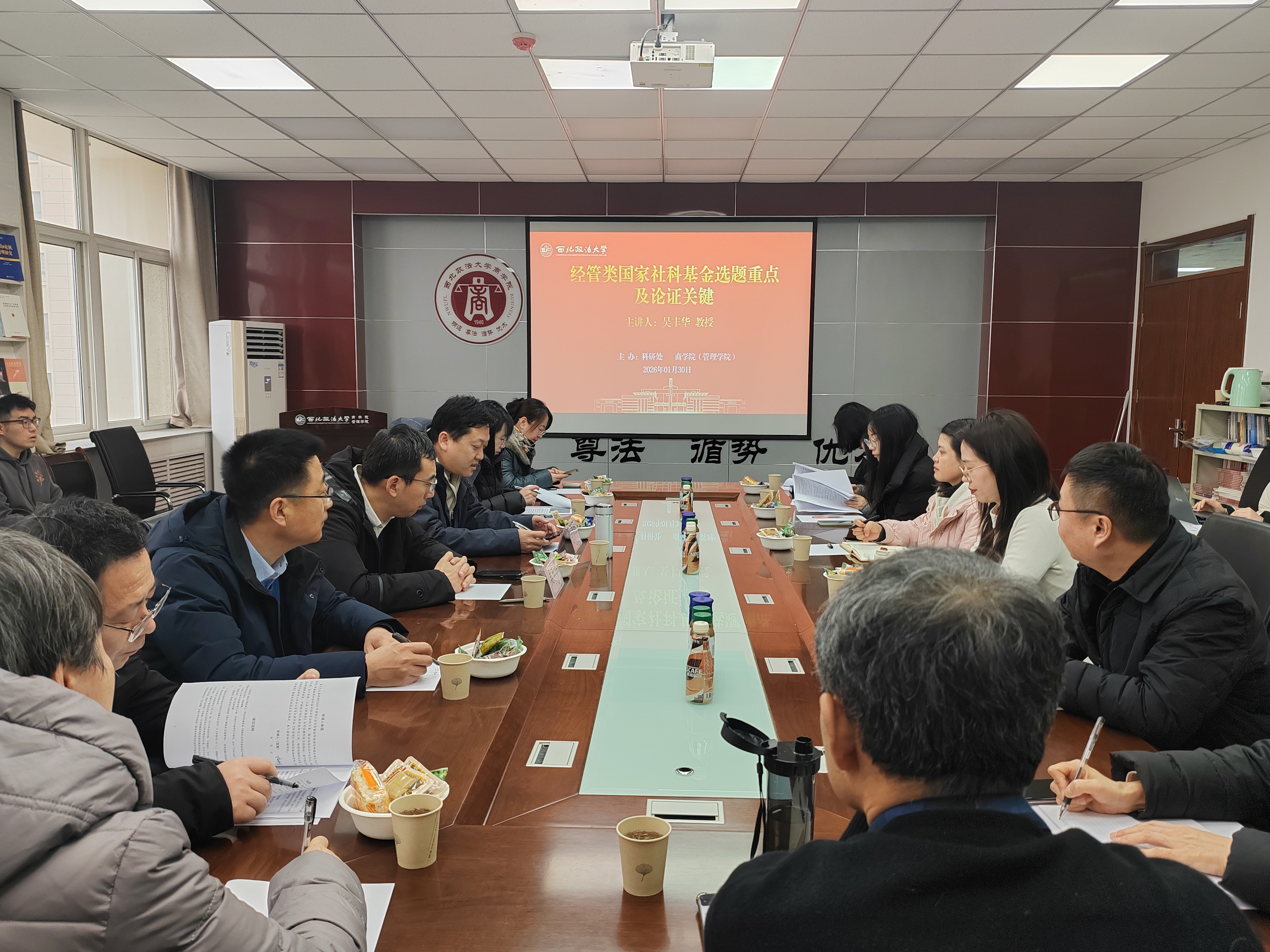1月30日,商学院(管理学院)与校科研处联合举办2026年科研项目申报暨经验交流会。本次会议特邀西北大学经济管理学院吴丰华教授担任主讲嘉宾并进行专题辅导,商学院(管理学院)院长徐京平主持会议。