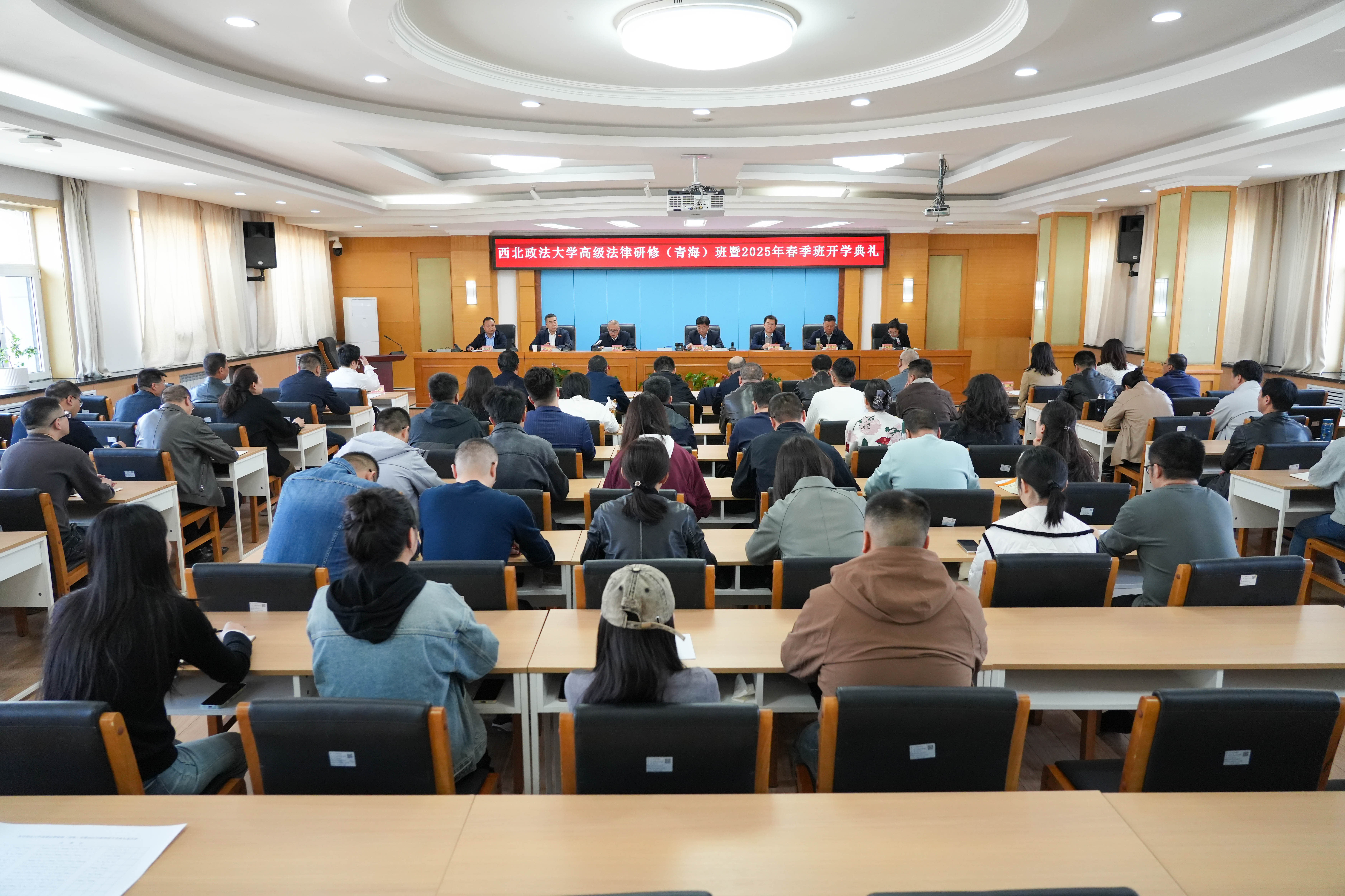4月9日上午,beat365英国官网高级法律研修(青海)班暨2025年春季班开学典礼在青海省司法厅举行。beat365党委副书记、校长范九利,青海省司法厅党组成员、政治部(警务部)主任唐金麒出席活动并致辞,青海省司法厅政治部(警务部)组织培训处处长马义波和beat365经济学院、新闻传播学院(艺术学院)教师代表参加活动,2025年春季班全体学员通过线上线下等形式共同参加了此次活动,活动仪式由青海省司法厅政治部(警务部)副主任赵晶华主持。