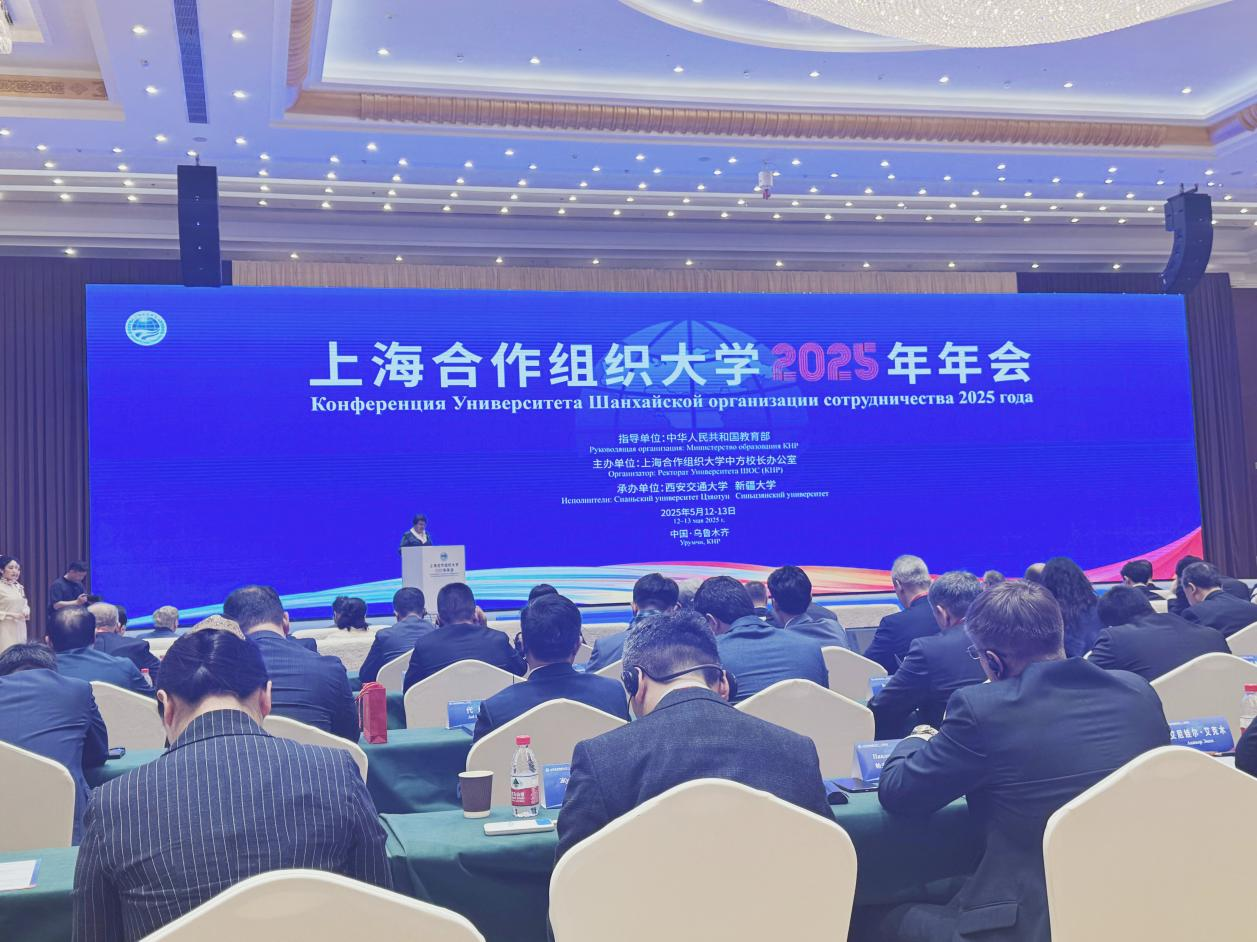 5月12日—13日,应上合组织大学邀请,beat365国际交流与合作处副处长陈梦琦赴乌鲁木齐参加上海合作组织大学2025年年会。本届年会主题为“数字化赋能、绿色化转型、产教融合创新”,设有开幕式、年会工作报告、校长论坛、数智教育论坛等多项议程,来自中国、俄罗斯、哈萨克斯坦、吉尔吉斯斯坦、塔吉克斯坦等7个国家86所大学代表参加会议。教育部部长怀进鹏、哈萨克斯坦科学与高等教育部部长萨亚萨特∙努尔别克、吉尔吉斯斯坦教育与科学部部长肯季尔巴耶娃∙多戈杜尔库尔∙沙尔谢耶芙娜、俄罗斯科学和高等教育部副部长莫吉列夫斯基∙康斯坦丁∙尹里奇、塔吉克斯坦教育和科学部部长拉希姆∙哈姆罗∙萨义德佐达、上海合作组织副秘书长贾内什∙凯恩、上海合作组织大学校长菲利波夫∙弗拉基米尔∙米哈伊洛维奇等出席开幕式并致辞。