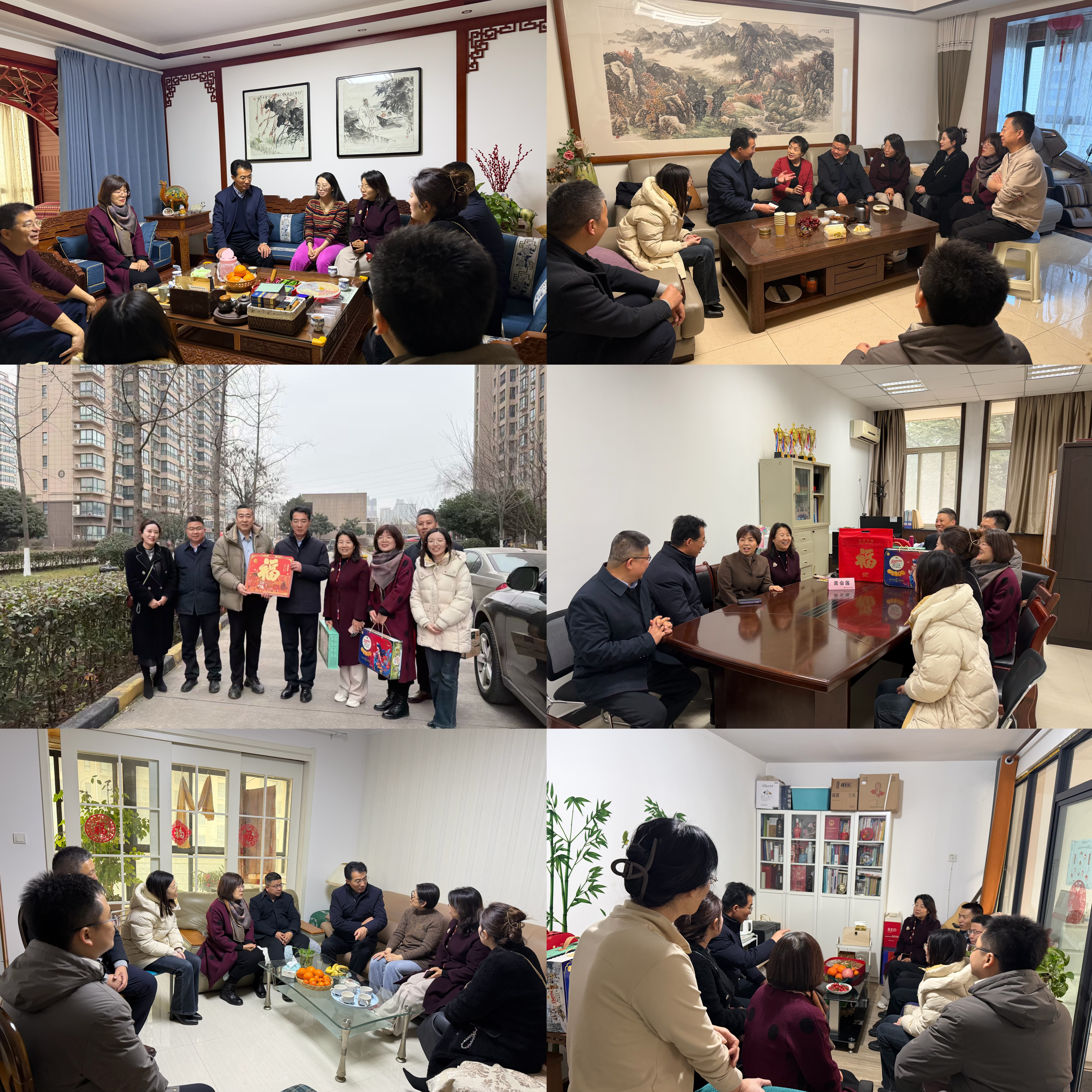 慰问组一行先后走访慰问了孙江、孙玉红、毛小红、刘红岭、龚会莲、付欣六位教师,慰问人员拉家常、问冷暖,细致了解老师们的生活状况与实际需求,感谢他们长期以来对学校建设发展的关心与支持,并送上慰问品和节日问候。