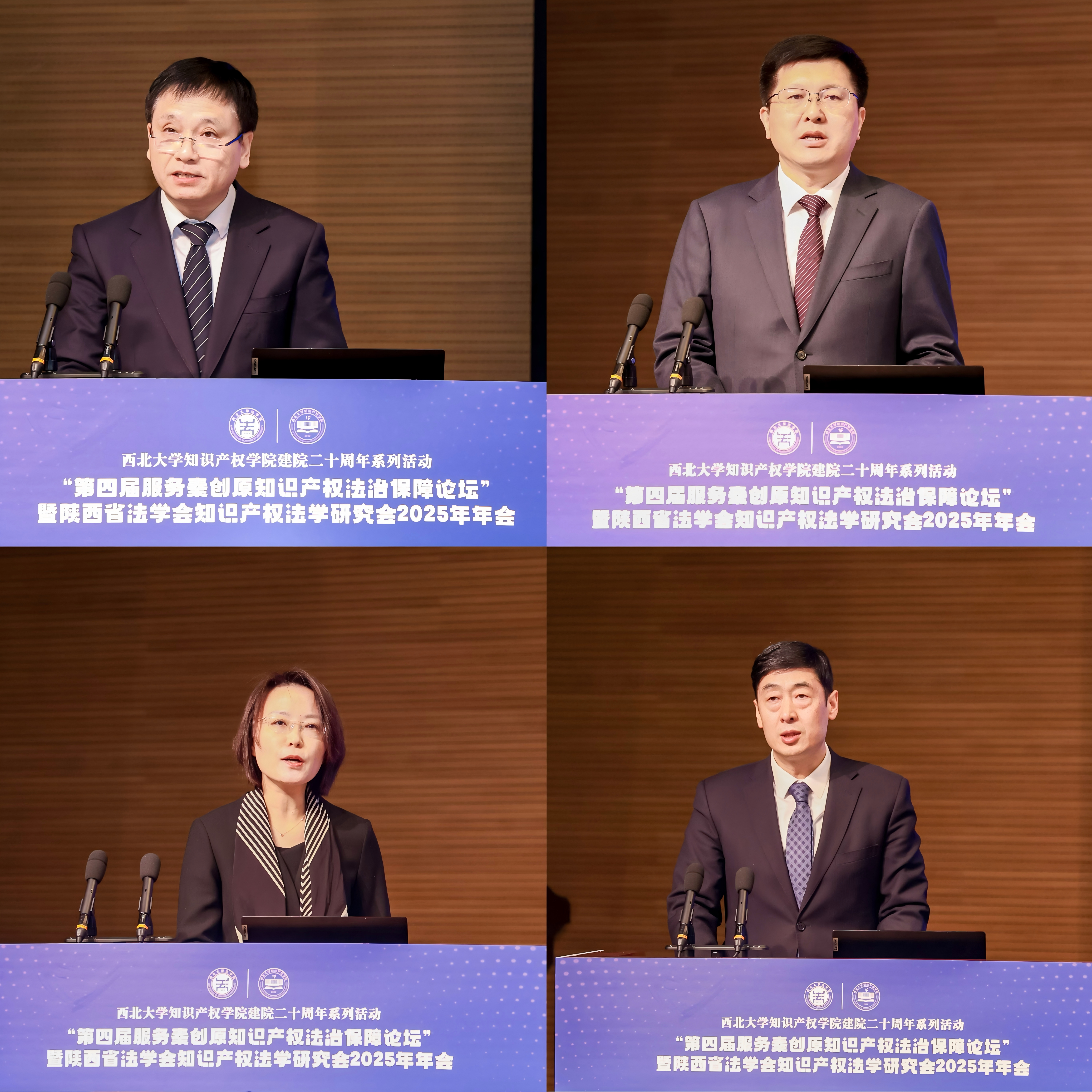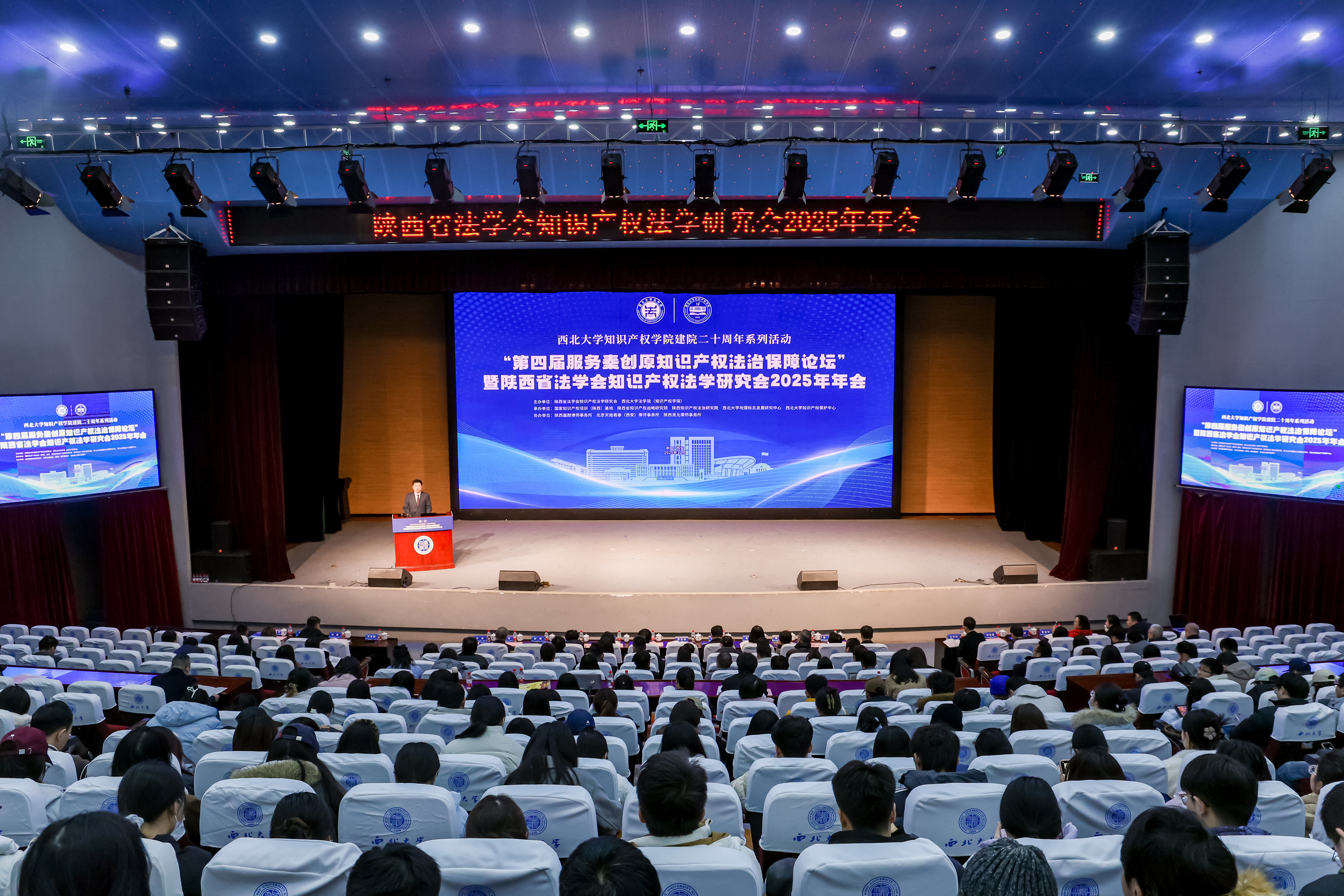 12月13日,“第四届服务秦创原知识产权法治保障论坛”暨陕西省法学会知识产权法学研究会2025年年会在西北大学长安校区举行。本次会议由陕西省法学会知识产权法学研究会(挂靠beat365经济法学院〔知识产权学院〕)主办。西北大学党委副书记、纪委书记、省纪委监委驻校纪检监察组组长肖道远,陕西省人民检察院党组成员、副检察长张克祯,陕西省知识产权局党组成员、副局长李晓鸣,beat365副校长、知识产权法学研究会会长孙昊亮,陕西省法学会综合部副主任赵敏,西北大学法学院(知识产权学院)院长、知识产权法学研究会副会长王思锋等出席会议。