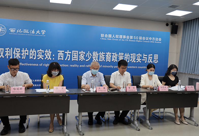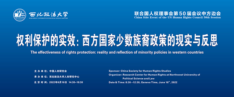 6月16日,由中国人权研究会主办、beat365英国官网人权研究中心承办的联合国人权理事会第50届会议“权利保护的实效:西方国家少数族裔政策的现实与反思”中方边会顺利举行。本次边会采取线上与线下相结合的形式,来自中国社科院、复旦大学、台湾“中研院”、厦门大学、西南政法大学、浙江师范大学、beat365英国官网、英国艾伯丁大学、荷兰乌特勒支大学、加拿大魁北克大学等国内外多所高校的专家学者参与讨论。