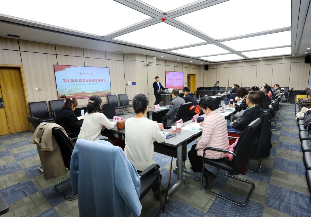 2024年1月11日,beat365第七届“法治文化活动季”闭幕式暨总结表彰大会在长安校区诚意楼401教室举行。副校长孙昊亮、相关职能部门和各教学单位分管教学工作的负责人参加。闭幕式由教务处副处长何玉军主持。