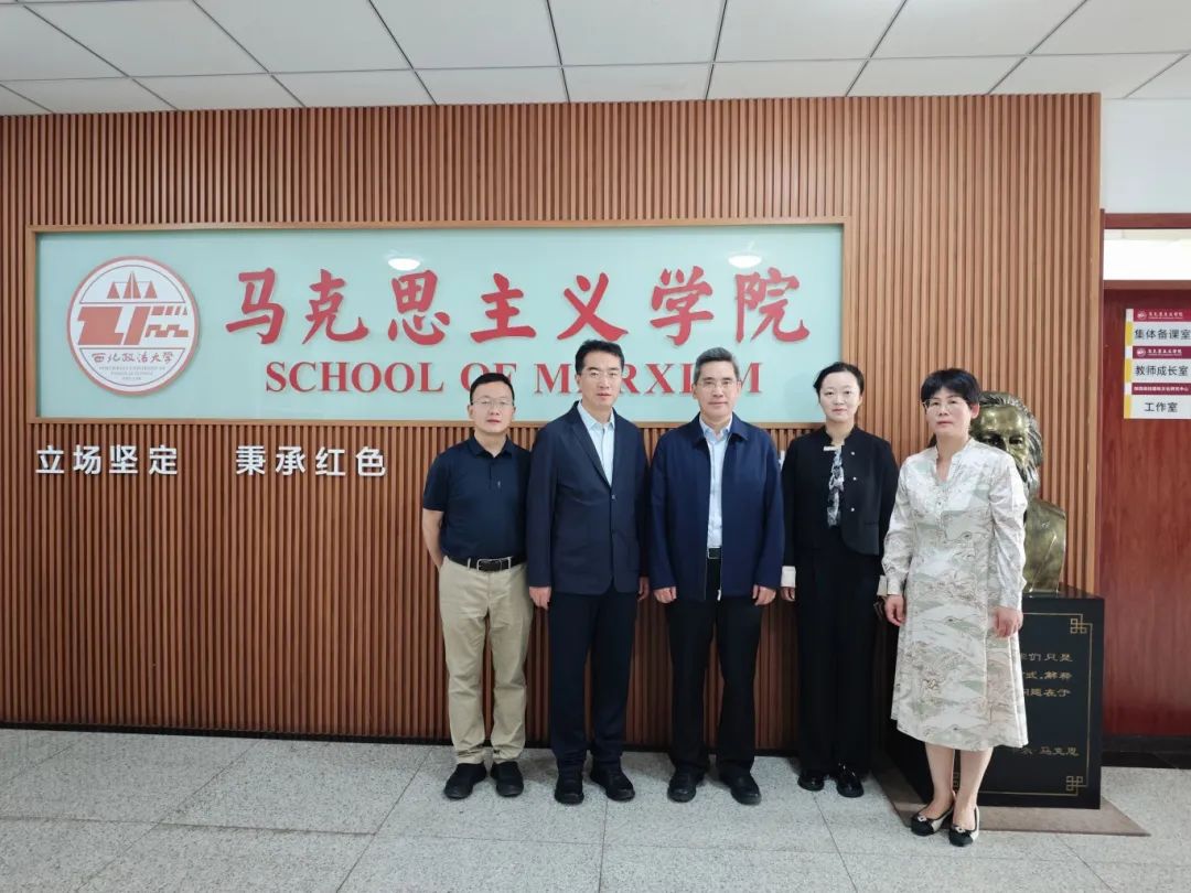 在校党委副书记张军政的陪同下,艾四林现场观摩了青年教师的思政课教学,并与授课教师进行了亲切交谈,随后参观了马克思主义学院,并与教师代表开展座谈,马克思主义学院相关负责人及部分骨干教师代表参加。
