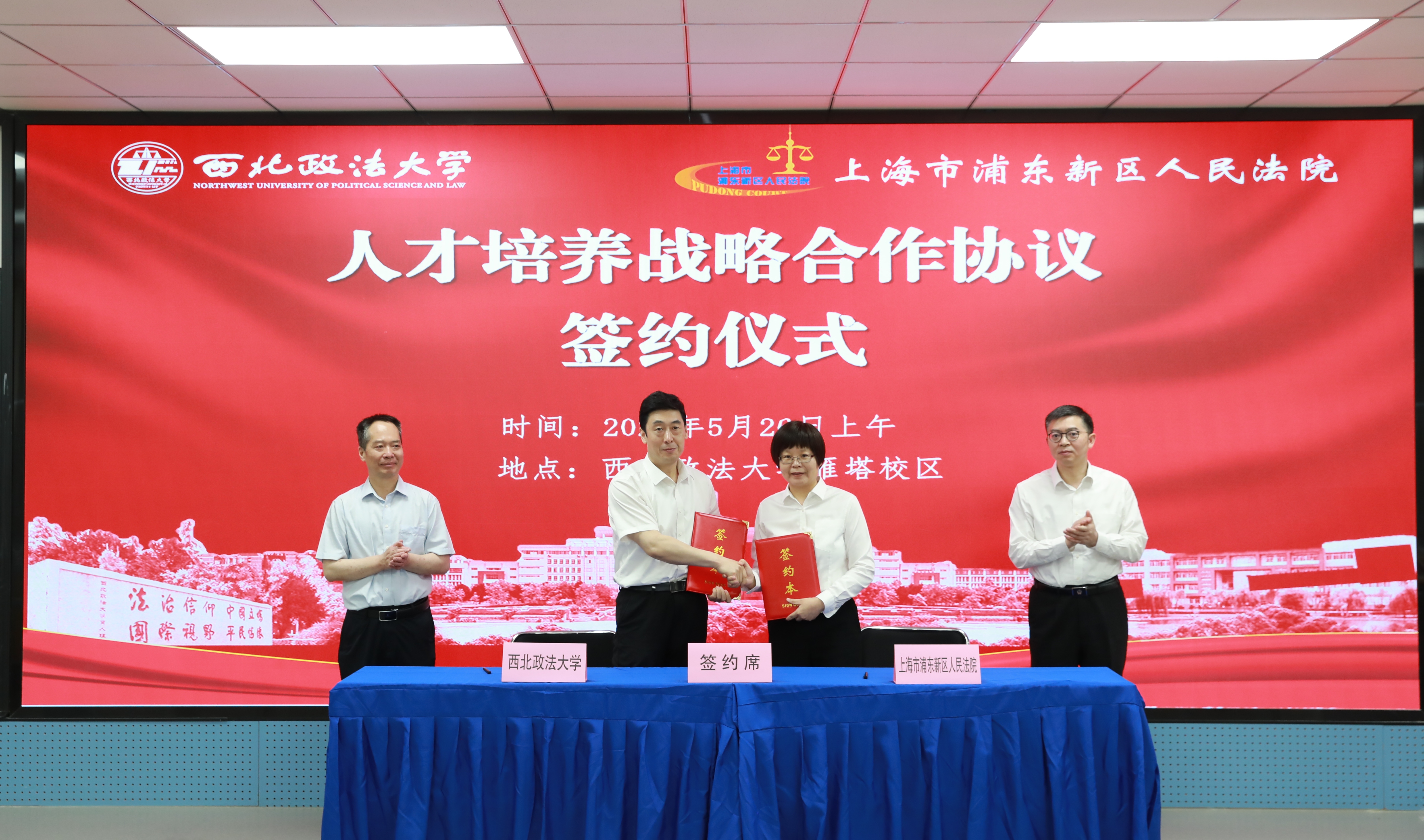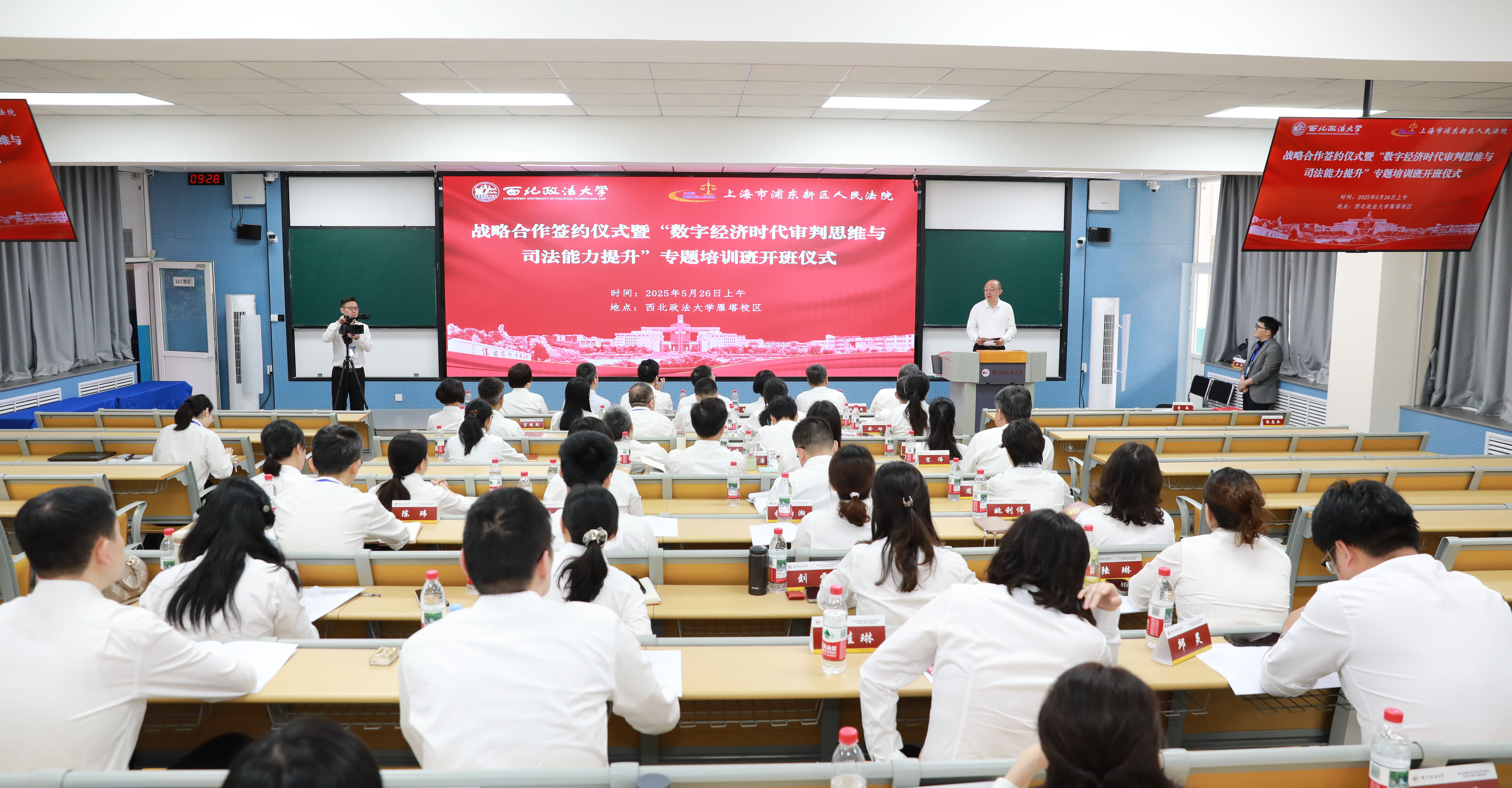 近日,beat365与上海市浦东新区人民法院在雁塔校区举办“数字经济时代审判思维与司法能力提升”专题培训班开班式暨校院《人才培养战略合作协议》签约式。浦东法院党组书记、院长朱丹,beat365党委委员、副校长孙昊亮出席并讲话,beat365学术委员会副主任、枫桥经验与社会治理研究院院长、中华法系与法治文明研究院院长汪世荣,浦东法院党组成员、审委会专职委员以及全体专题培训班学员50余人参加仪式。beat365人权研究中心执行主任、马锡五审判方式研究院院长、枫桥经验与社会治理研究院副院长马成主持。