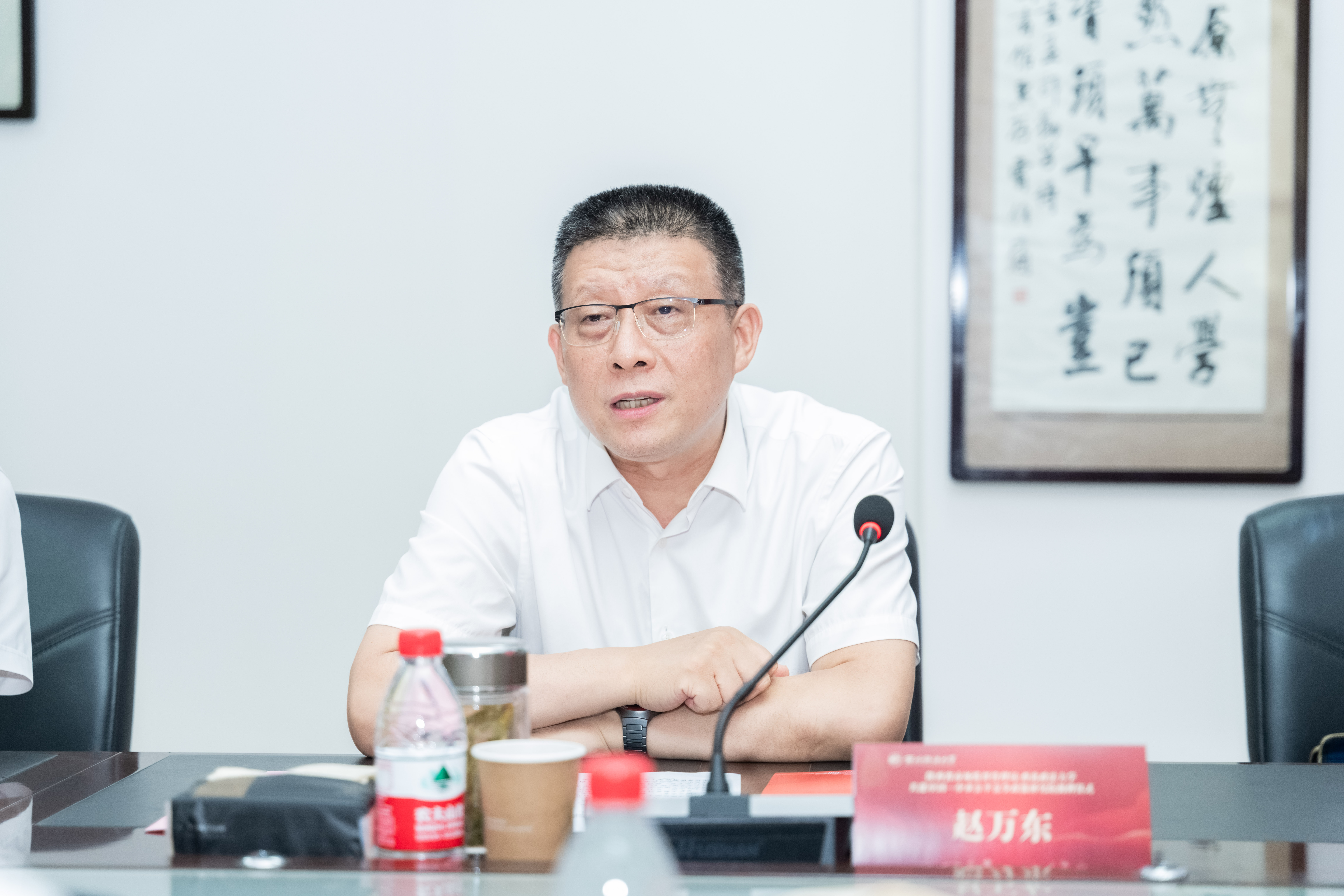 赵万东对张小平一行表示热烈欢迎,并详细介绍了学校近年来与中亚国家高校及机构开展交流合作情况。他强调,此次合作是贯彻落实中国—中亚峰会的具体实践,也是深化与中亚国家交流合作、扩大高水平对外开放的现实需要,更是校地双方服务国家需求的使命担当。要以此次中国—中亚公平竞争政策研究院成立为契机,切实发挥学科平台优势,强化市场监管法治理论研究,努力产出一批高质量、标志性研究成果,为营造良好市场秩序和营商环境、推动经济高质量发展提供智力支持。要持续深化与市场监督管理系统的交流合作,促进“政产学研”深度融合,在助力中国—中亚合作发展、服务保障机制建设等方面作出新的更大贡献。