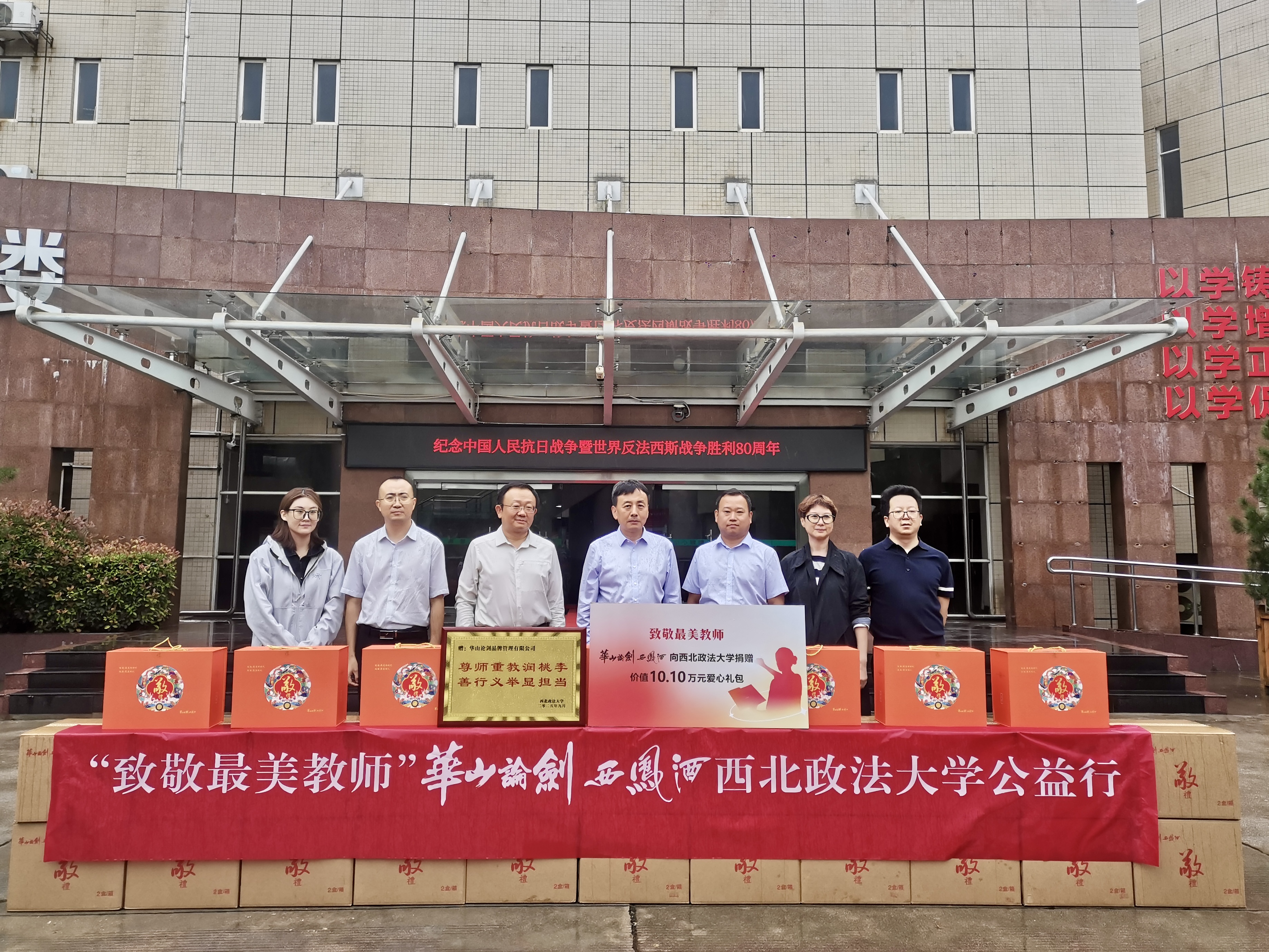 在第41个教师节即将到来之际,9月5日下午,华山论剑西凤酒“致敬最美教师”公益捐赠活动在beat365长安校区举行。华山论剑品牌管理有限公司相关负责人,beat365副校长马朝琦,党委教师工作部、人事处、教师发展中心等相关职能部门负责人参加活动。