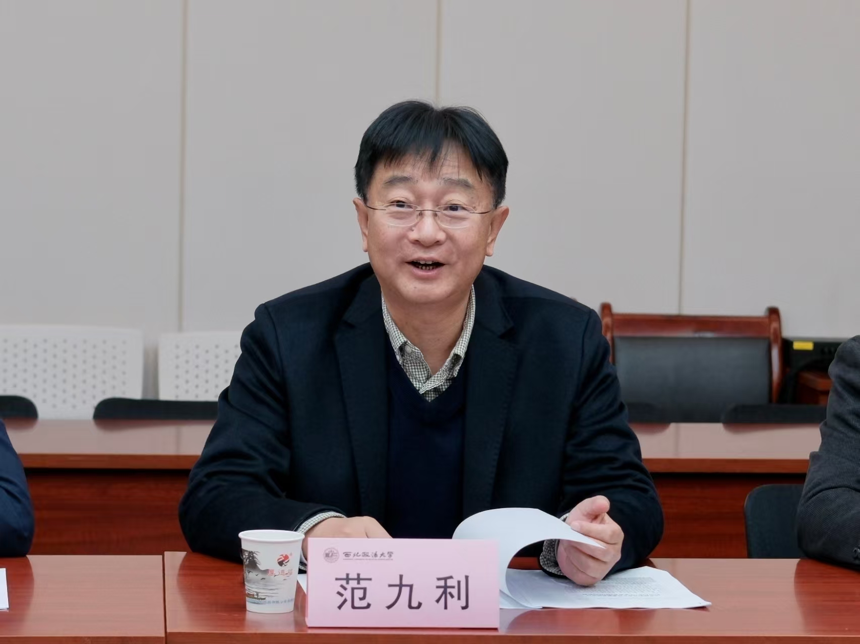 范九利代表学校对贾正兰一行的到来表示热烈欢迎,并详细介绍了学校在推进中国——中亚涉外法治合作领域的工作成效。他指出,近年来学校深耕该领域,已与中亚多国高校、法律服务机构建立常态化合作机制,形成了特色鲜明的工作格局。在跨境法律服务方面,学校组建专业团队搭建信息共享平台,精准为企业跨境商事活动提供国别法律解读、实务指引等支撑;在人才培养方面,创新“法律+外语”复合型培养模式,着力培育既具备跨法律体系专业素养,又熟悉跨境商事纠纷解决实务的优质人才。他强调,学校愿进一步加强与陕西省贸促会等实务单位的协同联动,整合多方资源、凝聚合作合力,共同为保障中国企业海外合法权益、服务“一带一路”建设贡献智慧与力量。