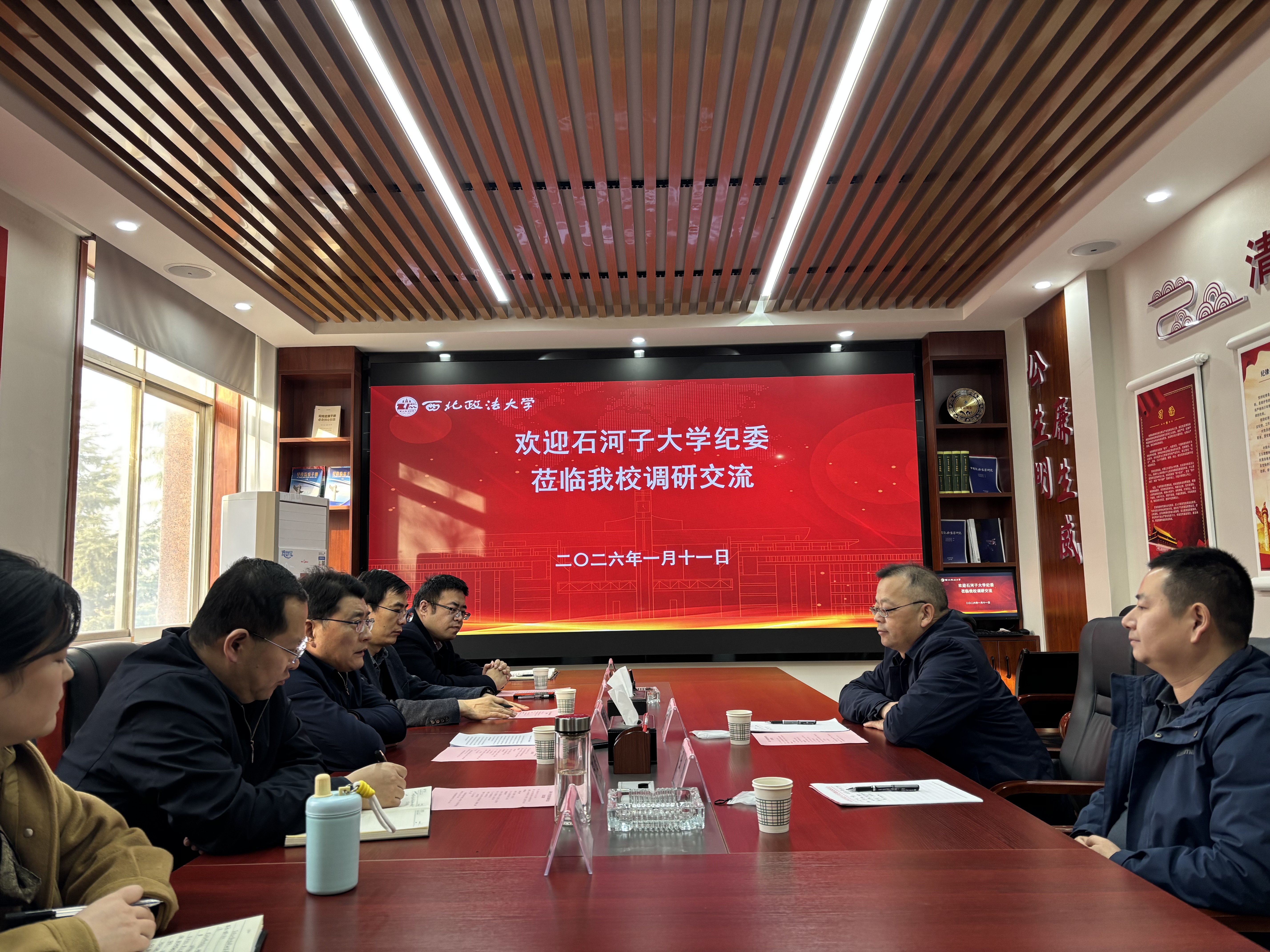 1月11日下午,石河子大学党委常委、纪委书记牛新民一行来校调研交流纪检监察及学科建设工作。校党委副书记、纪委书记、监察专员刘志彬出席并主持座谈会。