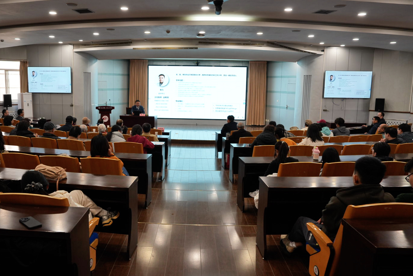 为切实关爱beat365教职工身心健康,普及脑血管疾病防治与保健知识,12月18日,beat365在长安校区校务楼二楼报告厅举办脑血管健康专题宣讲活动。本场活动特邀国内知名脑血管专家、西安三博脑科医院业务院长李力主任医师担任主讲。校长范九利,校党委副书记、纪委书记、监察专员刘志彬出席,200余名师生代表参加。校党委副书记张军政主持。