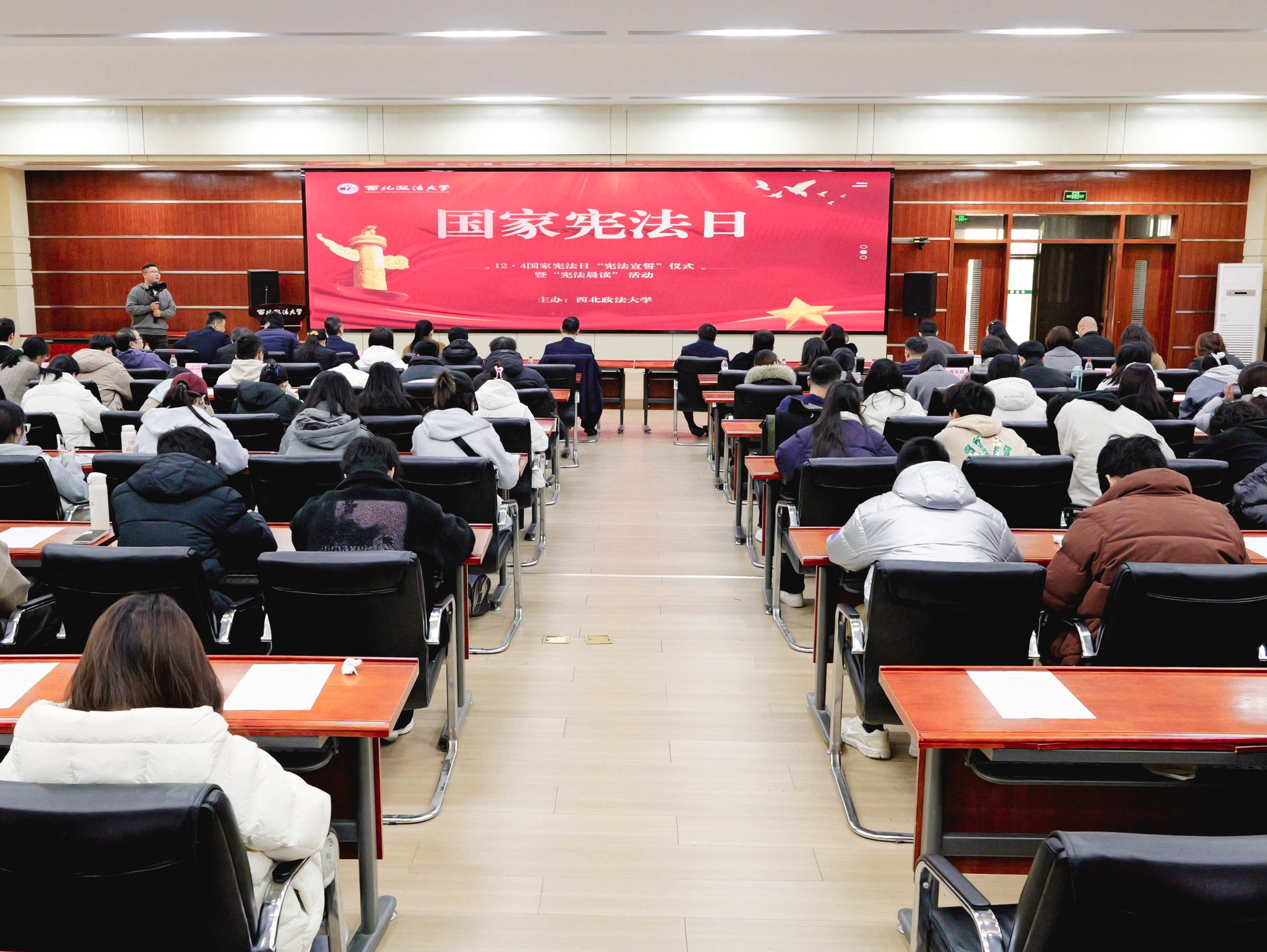 活动分两个阶段进行。第一阶段,全体参会师生观看了国家宪法日宣传片,在经济学院2024级卫文斌同学的带领下,郑重宣誓:“忠于中华人民共和国宪法,维护宪法权威,履行法定职责,忠于祖国、忠于人民,恪尽职守、廉洁奉公,接受人民监督,为建设富强民主文明和谐美丽的社会主义现代化强国努力奋斗!”;第二阶段,全体参会人员同步线上参与全国青少年普法网络直播,进行线上宪法晨读。