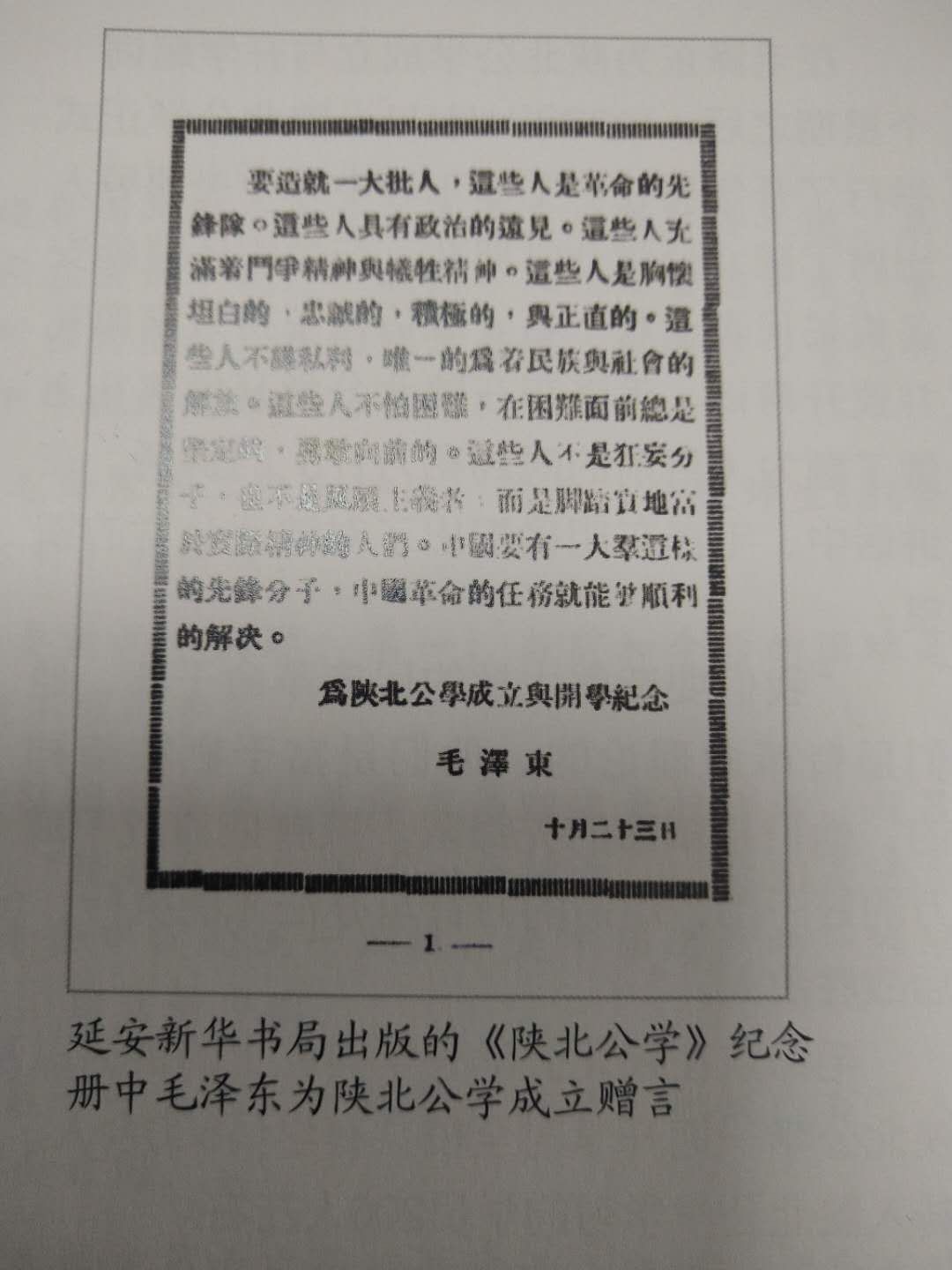 资料显示,毛泽东在陕北公学至少有过10次讲话,3次题词。
