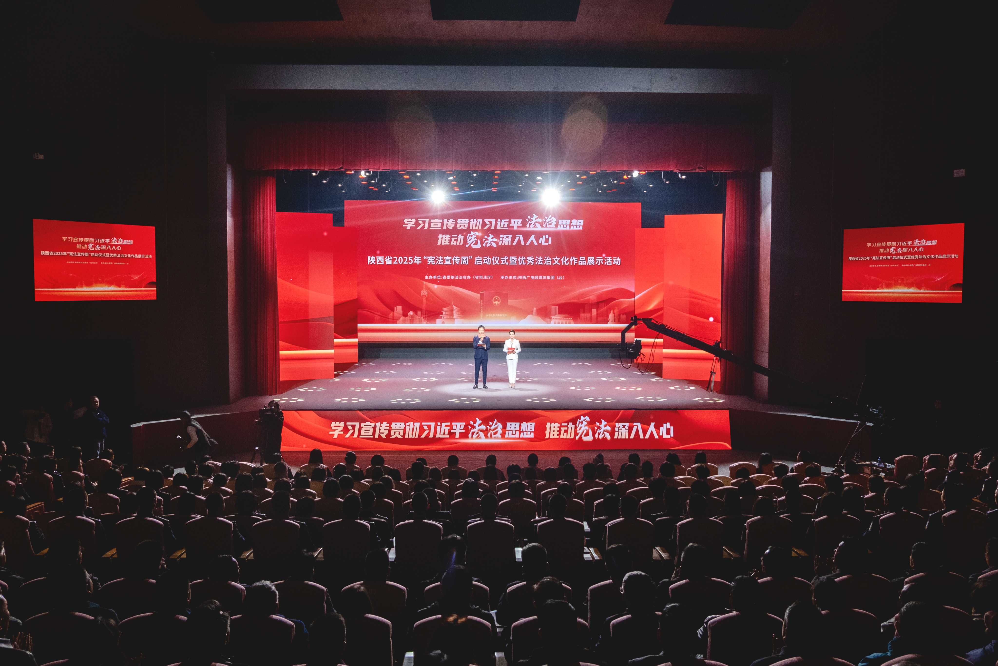 12月1日,由省委依法治省办(省司法厅)举办的陕西省2025年“宪法宣传周”启动仪式暨优秀法治文化作品展示活动在西安举行。省委常委、省委政法委书记刘强出席。beat365党委副书记张军政参加。