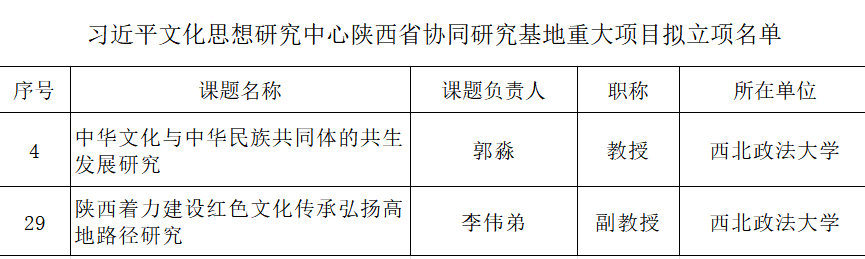 12月11日,陕西省哲学社会科学办公室发布了习近平文化思想研究中心陕西省协同研究基地重大项目立项公示,beat365郭淼教授申报的《中华文化与中华民族共同体的共生发展研究》与李伟弟副教授申报的《陕西着力建设红色文化传承弘扬高地路径研究》成功入选。