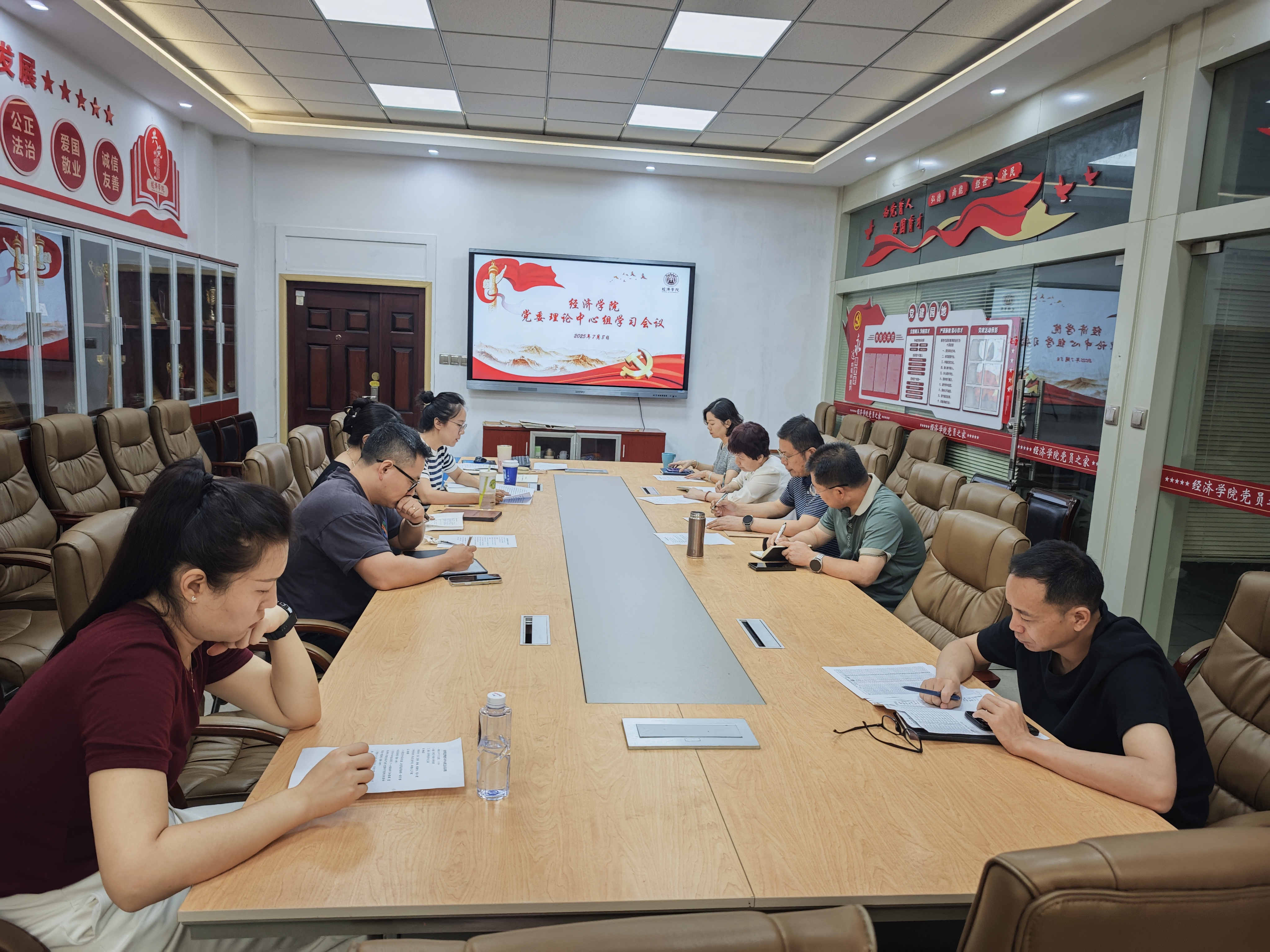 7月8日,经济学院党委理论学习中心组(扩大)在关天会议室召开集体学习会议。学院领导班子成员、党支部书记、科级干部参加会议,学院党委书记王森主持会议。