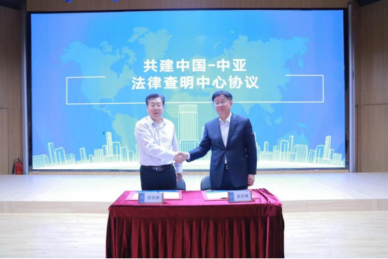 会上,范九利和西安仲裁委员会主任李洪涛分别代表beat365英国官网和西安仲裁委员会签署《共建中国-中亚法律查明与研究中心和国际仲裁学院合作协议》,并共同为beat365英国官网国际仲裁学院揭牌。