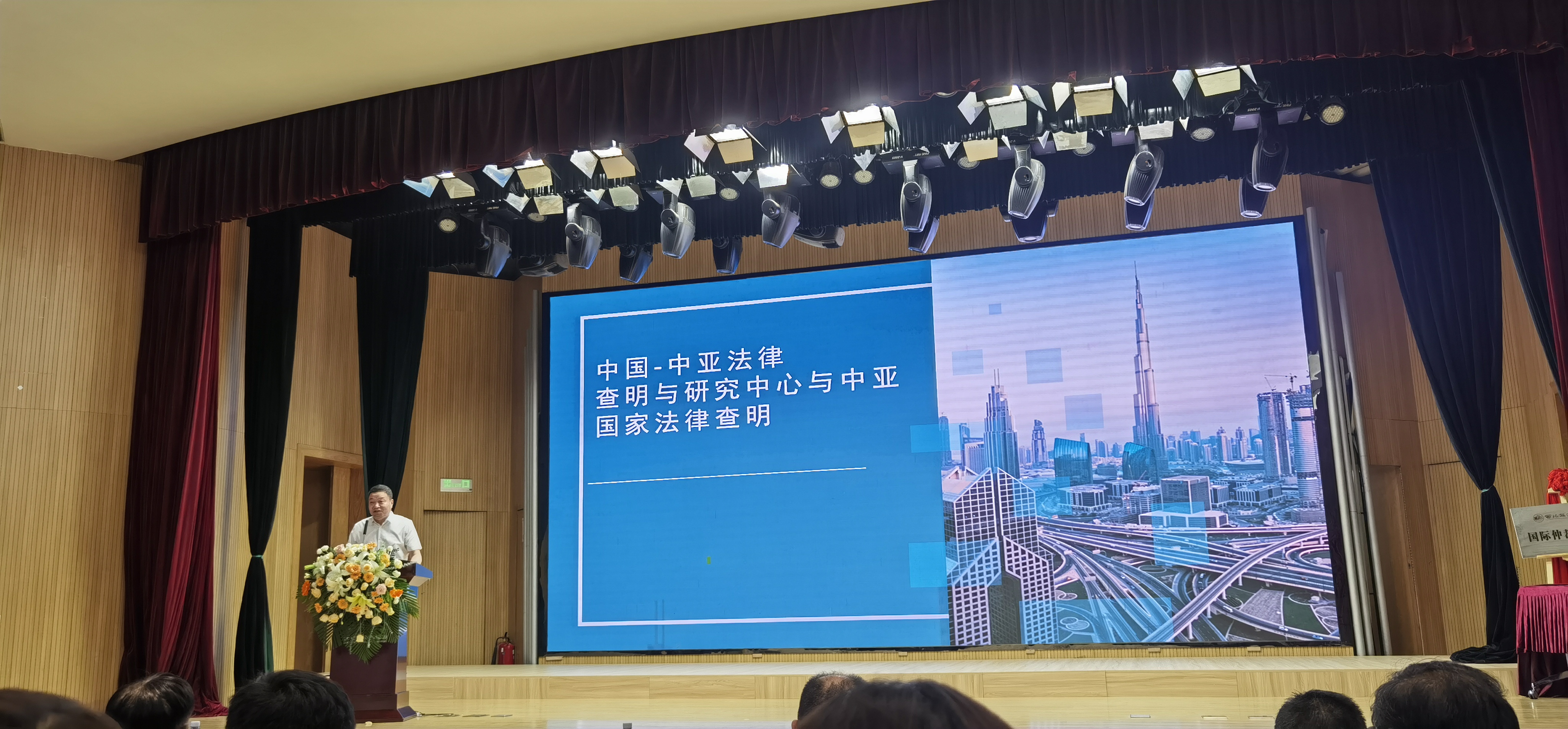 国际法学院院长刘亚军就《中国-中亚法律查明与研究中心与中亚国家法律查明》作主旨演讲,对中国-中亚法律查明与研究中心及中亚国家法律数据库、中亚国家法律研究、涉外法治人才培养、中亚国家法律服务等四大职能逐一作了详细介绍。