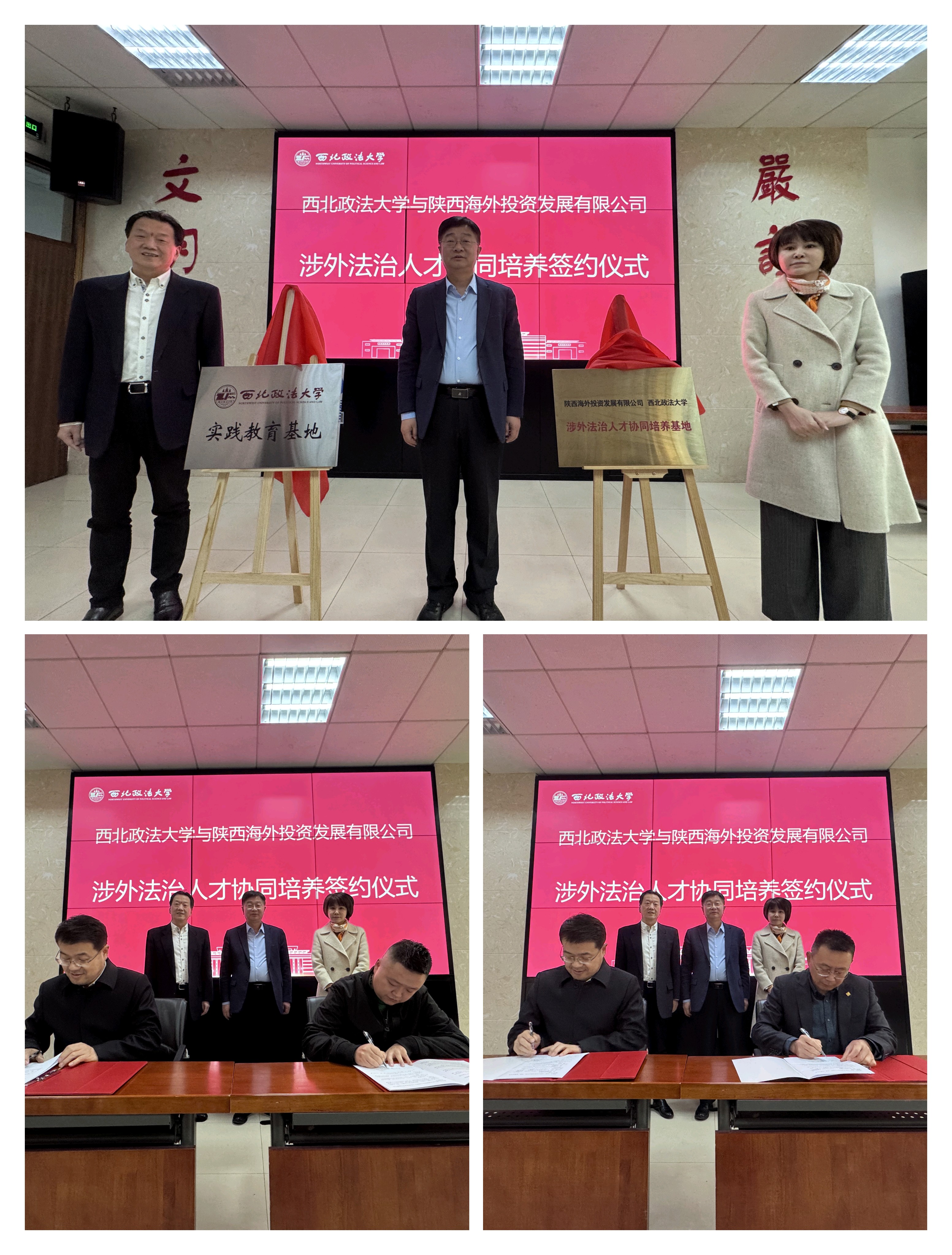 范九利、王东红共同为“beat365英国官网实践教育基地”及“涉外法治人才协同培养基地”揭牌。张荣刚与陕西海外投资发展有限公司副总经理冯晓旭、陕西金泰多元工贸有限公司总经理徐宾签署战略合作协议。