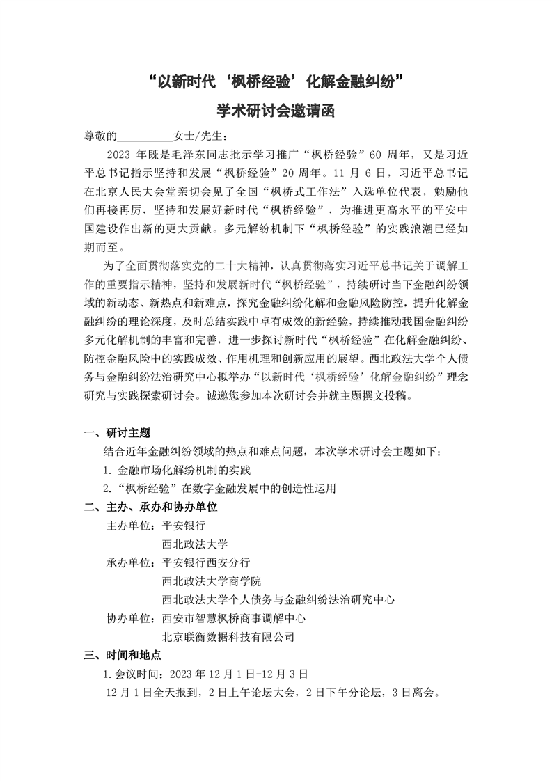 上一篇:“以新时代‘枫桥经验’化解金融纠纷”学术研讨会成功召开
