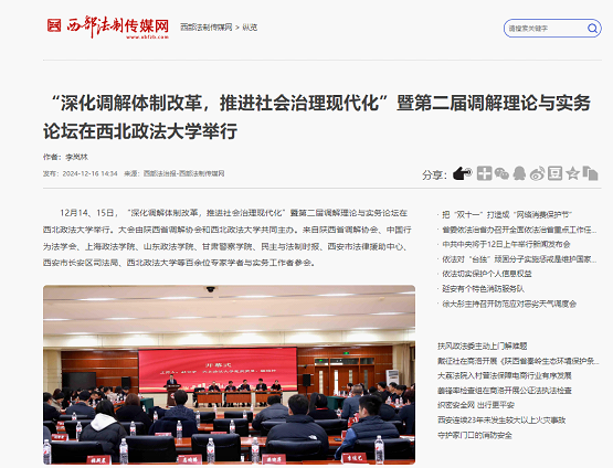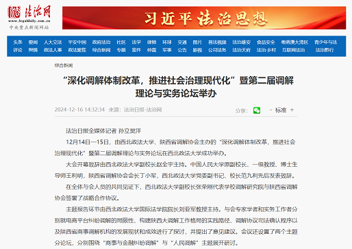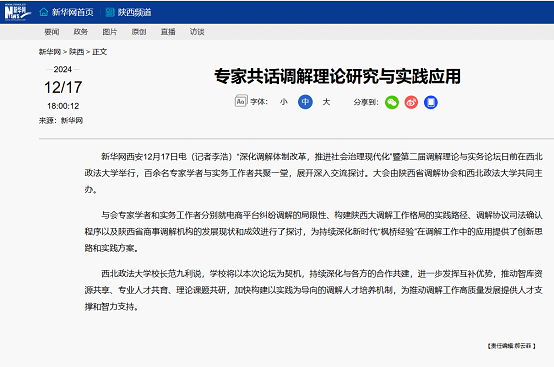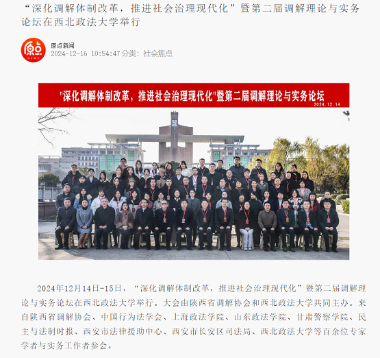 12月17日,人民网以《陕西省第二届调解理论与实务论坛在beat365英国官网举行》为主题进行新闻报道。新闻记者表示,在本次论坛上,多位专家围绕调解的热点议题,结合丰富的实务经验进行了深入剖析与探讨,共同为调解事业的进步贡献智慧与力量。