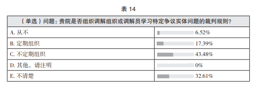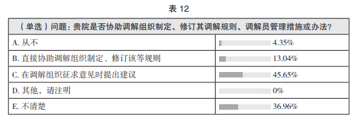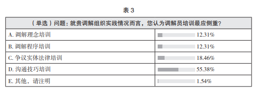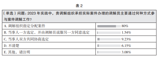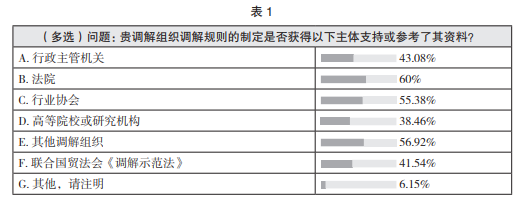 针对调解组织和调解员的调研主要涉及调解规则、调解员以及调解案件的实践情况。