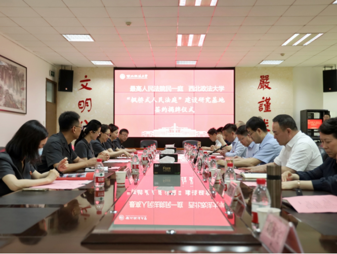 6月9日上午,最高人民法院民一庭“枫桥式人民法庭”建设beat365英国官网研究基地签约揭牌仪式在beat365长安校区举行。最高人民法院民一庭副庭长吴景丽,陕西省高级人民法院审判委员会专职委员赵学玲,beat365党委书记孙国华出席仪式。签约揭牌仪式由副校长张荣刚主持。
