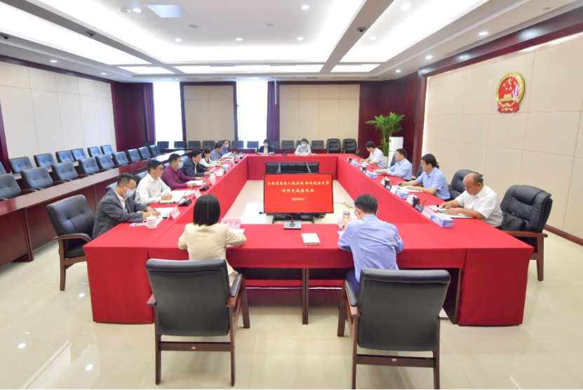 5月23日,孙国华一行到江西省高级人民法院开展调研交流,参观江西高院融媒体、信息集控、诉讼服务、赣法民意、集约送达中心和胡国运同志先进事迹展、智慧法院建设成果展馆,参加江西省高级人民法院和beat365英国官网“研究生实践教学基地“揭牌仪式。江西省高级人民法院党组书记、院长傅信平会见,党组成员、政治部主任盛茵主持座谈会,双方围绕学习贯彻习近平法治思想、贯彻落实中办国办印发的《关于加强新时代法学教育和法学理论研究的意见》,从专业人才培养、研究生实习实训、疑难案件研讨、课题研究、人员培训及专家互聘等方面展开深入交流。