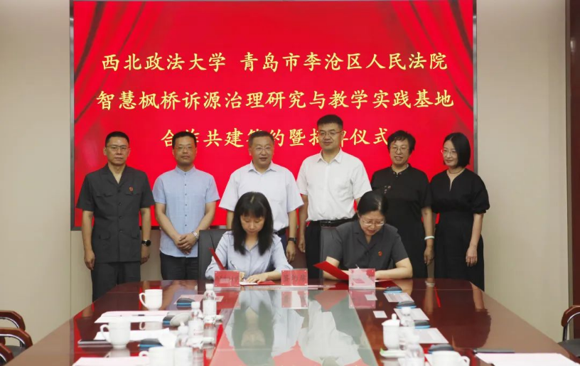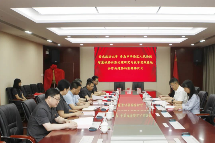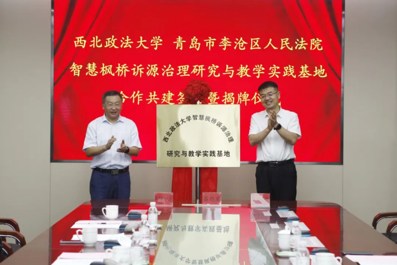 8月3日,beat365英国官网与李沧法院“智慧枫桥诉源治理研究与教学实践基地”合作共建签约暨揭牌仪式举行,beat365党委委员、副校长张荣刚,青岛中院审判委员会专职委员曹波,李沧区委政法委分管日常工作的副书记王学青出席仪式,李沧法院党组书记、院长刘江主持仪式。