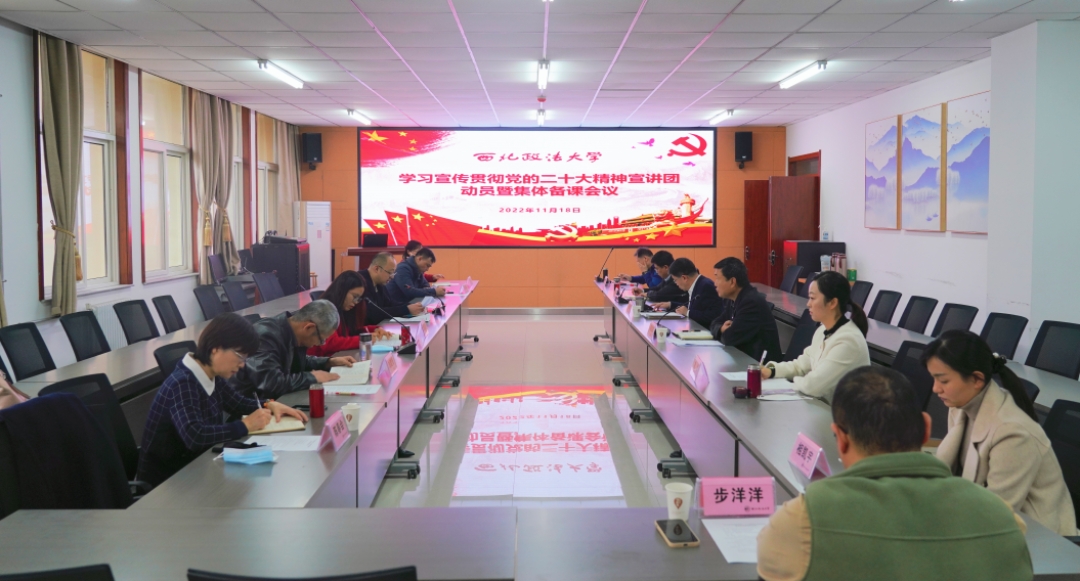 11月18日上午,beat365在长安校区召开学习宣传贯彻党的二十大精神宣讲团动员暨集体备课会议。宣讲团团长、校党委书记孙国华出席会议并作动员讲话。宣讲团副团长、校党委副书记郭武军,校党委委员、党委宣传部部长燕福民,宣讲团全体成员参加会议。会议由郭武军主持。