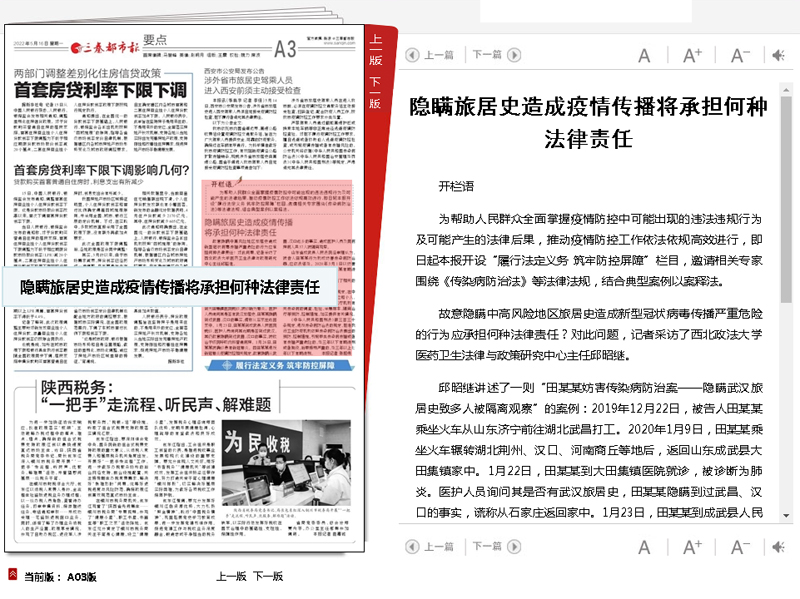 为帮助人民群众全面掌握疫情防控中可能出现的违法违规行为及可能产生的法律后果,推动疫情防控工作依法依规高效进行,即日起本报开设“履行法定义务筑牢防控屏障”栏目,邀请相关专家围绕《传染病防治法》等法律法规,结合典型案例以案释法。