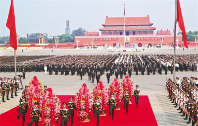 9月30日上午,习近平、李克强、栗战书、汪洋、王沪宁、赵乐际、韩正、王岐山等党和国家领导人来到北京天安门广场,出席烈士纪念日向人民英雄敬献花篮仪式。 |