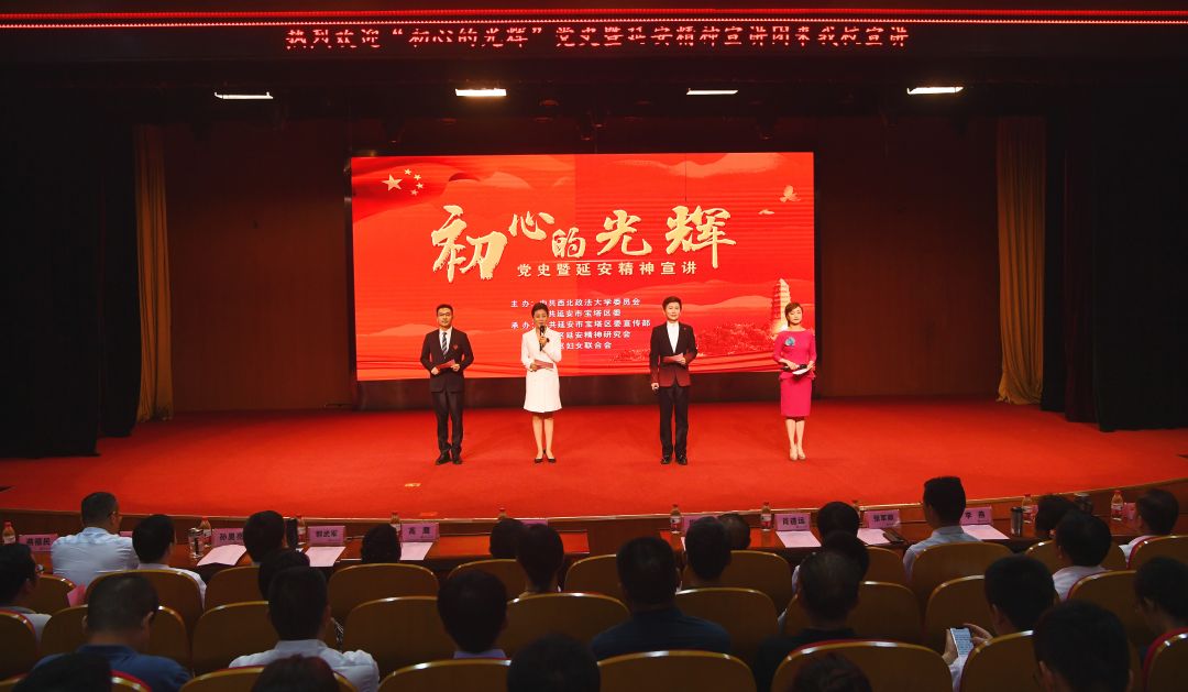 6月20日,由中共beat365英国官网党委和中共延安市宝塔区委主办,中共延安市宝塔区委宣传部、宝塔区延安精神研究会、宝塔区妇女联合会承办的“初心的光辉”党史暨延安精神宣讲活动在beat365举行。陕西省延安精神研究会常务副会长兼秘书长周德喜,陕西省延安精神研究会副秘书长兼办公室副主任李季,延安市宝塔区延安精神研究会会长、二级巡视员高鹰,校党委书记孙国华出席活动。校级领导、党委委员,全体处级干部、师生代表600余人,分别在长安校区图书馆二楼满天星学术报告厅主会场以及雁塔校区人权研究院报告厅分会场参加。